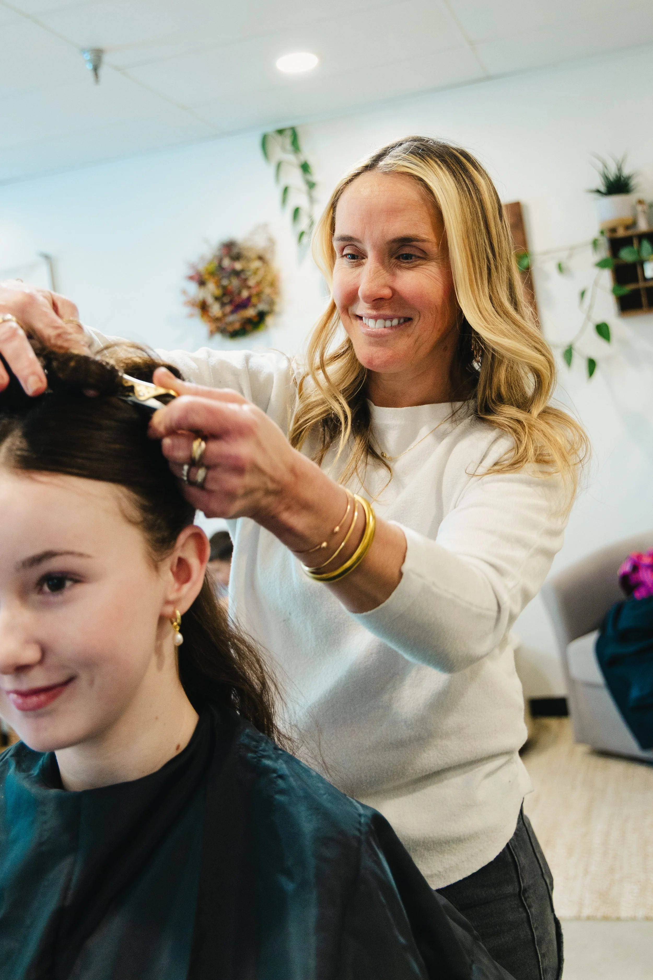 I have been doing hair for twenty seven years. I absolutely love working with people and making them feel there very best. I thrive working with lived in blonds. I love my supper out going bright blonds, brunettes & dark haired beauties! It makes me so happy to keep the integrity of the hair in the best shape possible! Human contact, emotionally and physically, is so important. I have so much gratitude to call this my job!